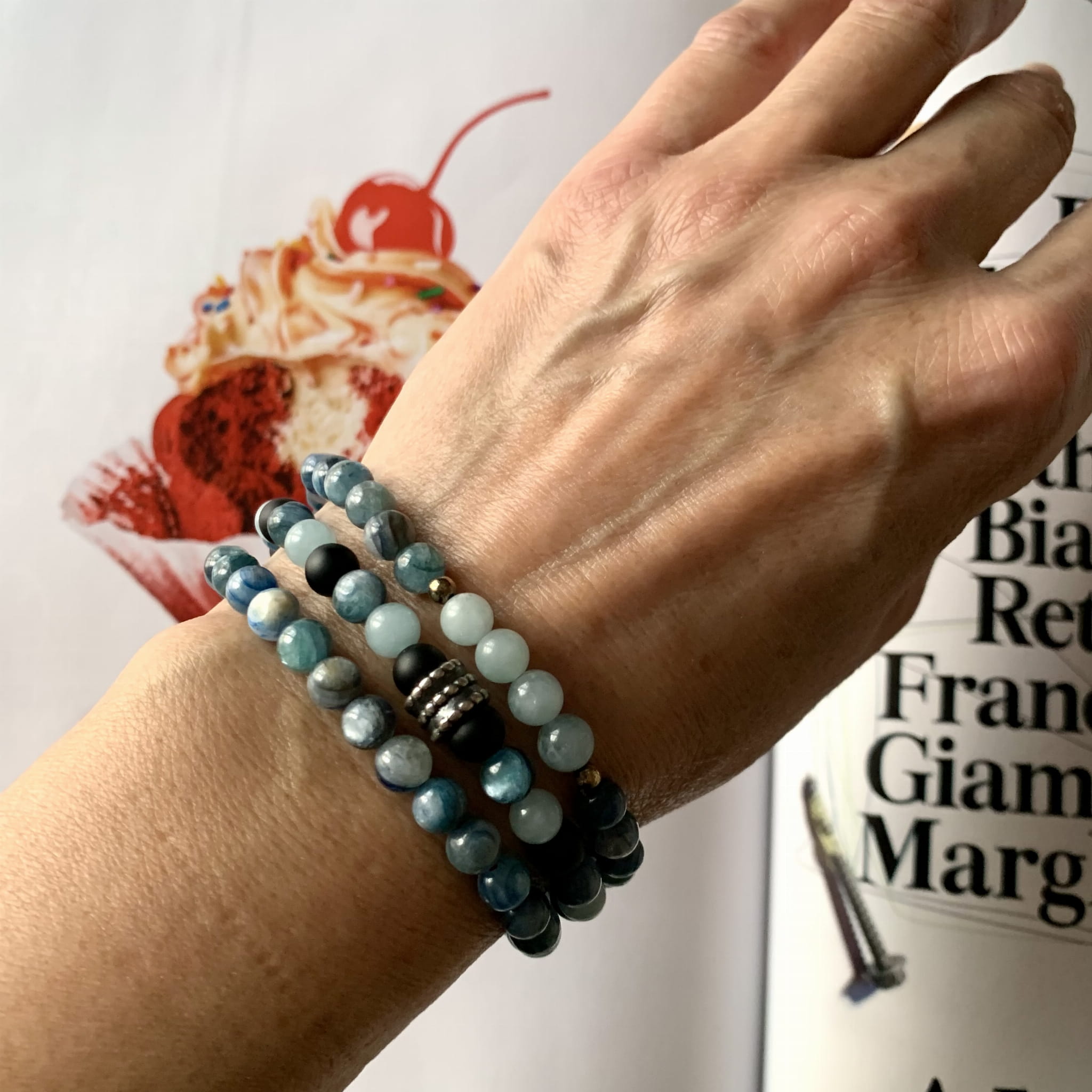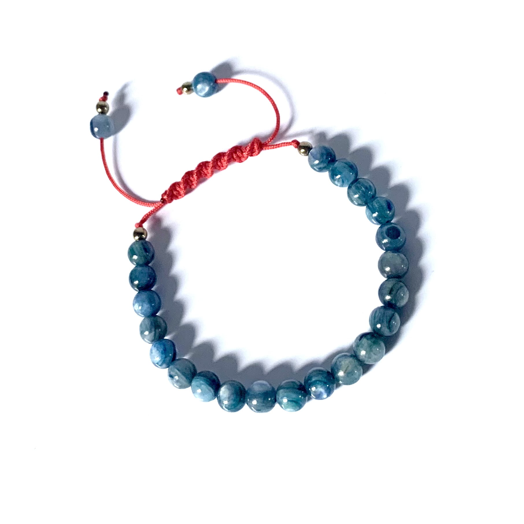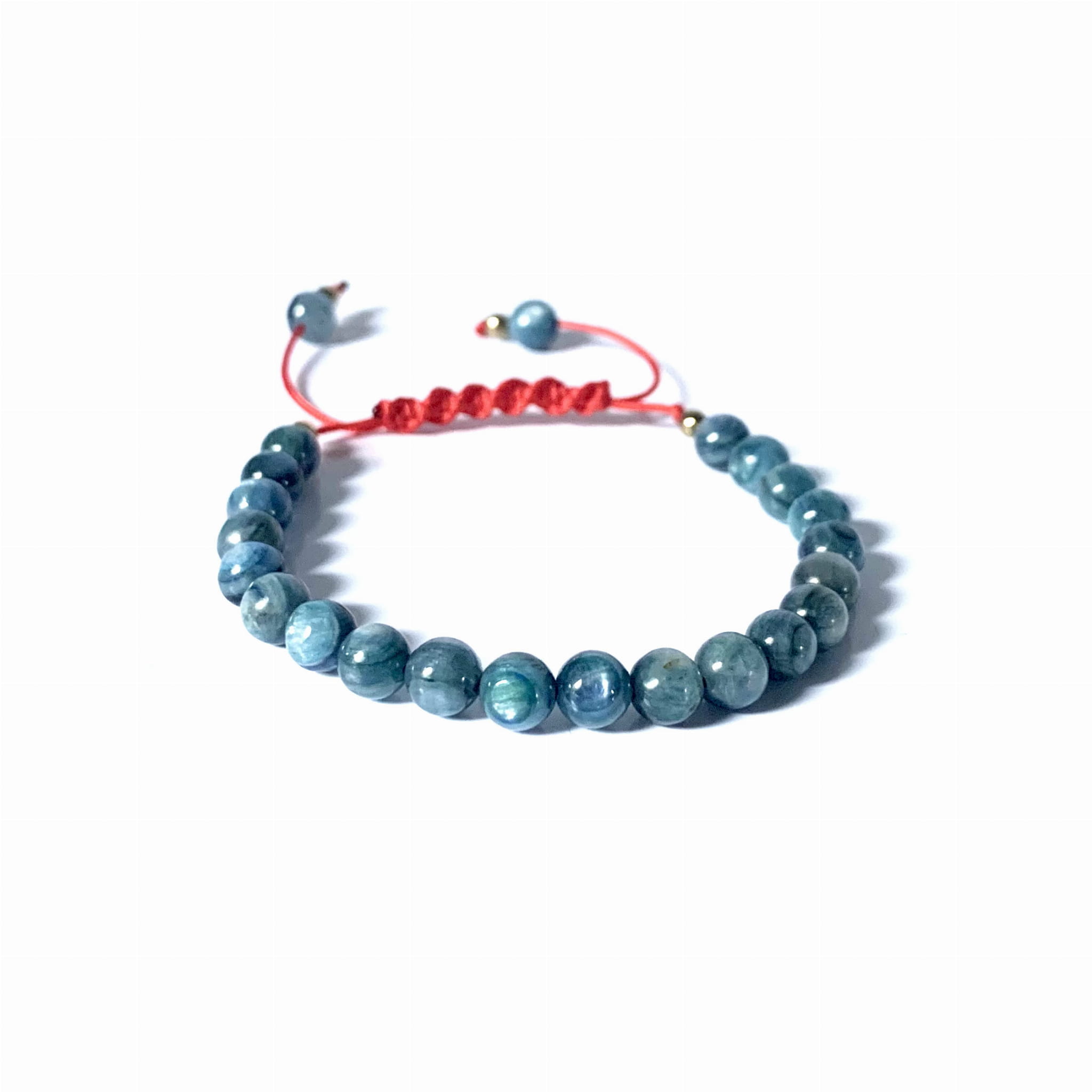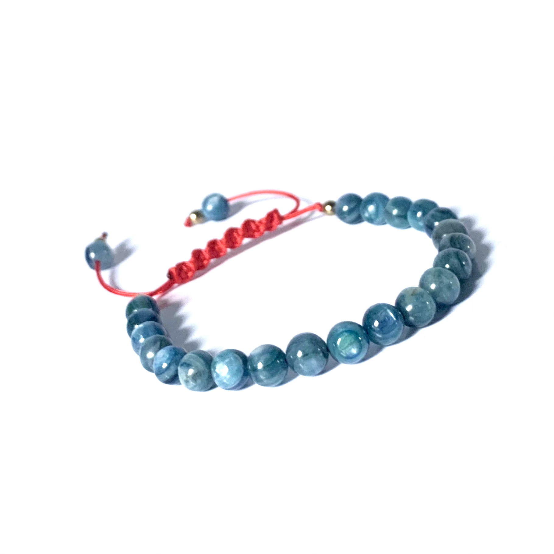 Bransoletka wykonana z gładkich kulek kyanitu wielkości 6 mm.